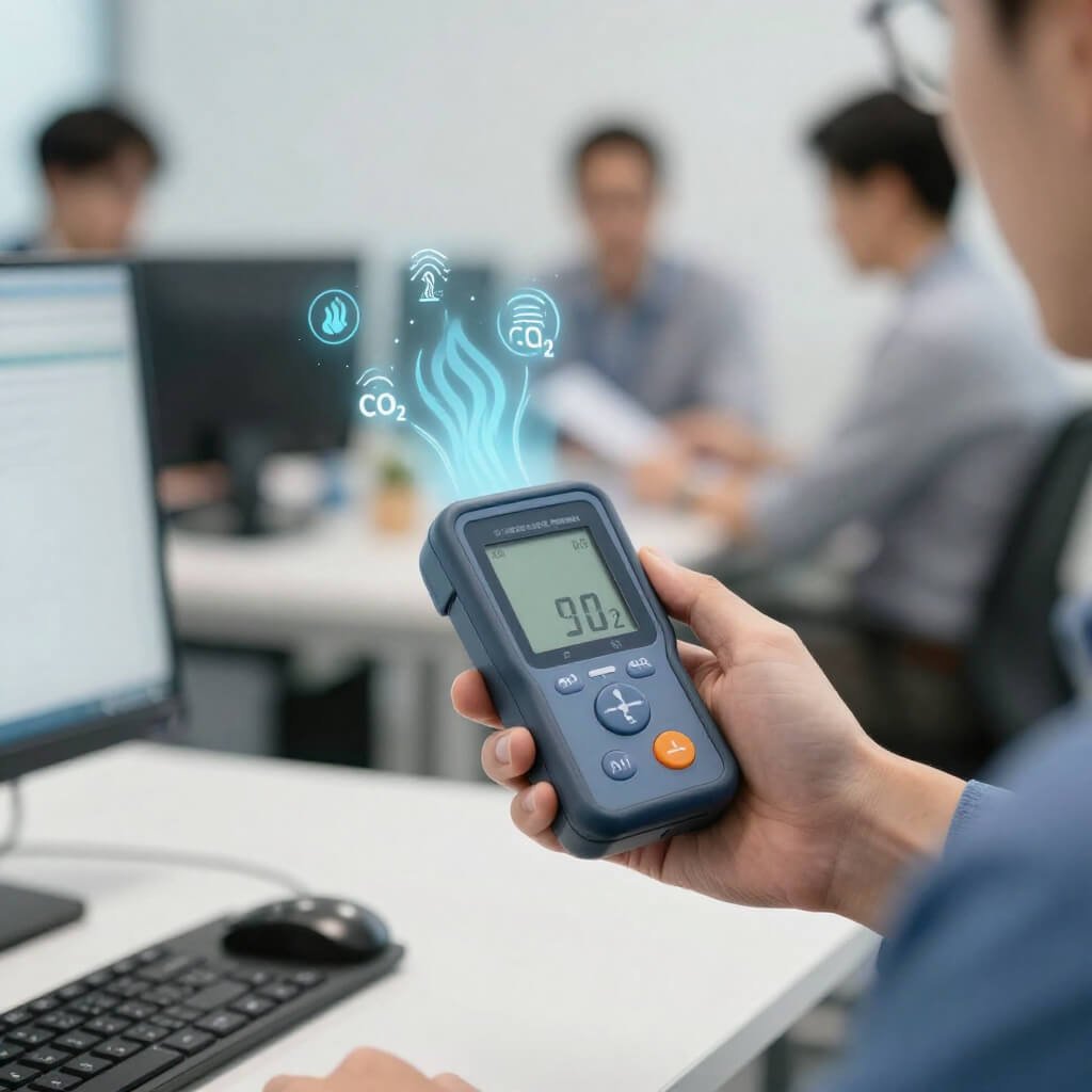 Inzet van gekalibreerde, medische-grade sensoren voor realtime CO₂, fijnstof en VOC-metingen op locatie.
